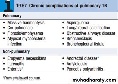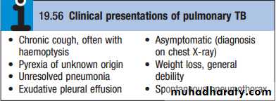 disease after primary infection is 10%, with roughly half of this risk occurring in the first 2 years after infection.Clinical features: pulmonary disease